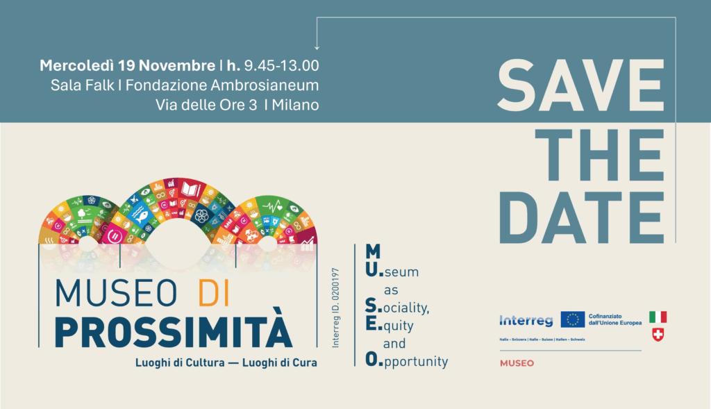 Mercoledì 19 novembre 2025 ore 9.45 – 13.00 presso Sala Falk – Fondazione Ambrosianeum Via delle Ore, 3 – MILANO si terrà il CONVEGNO sul tema: “Musei di prossimità: luoghi di cultura, luoghi di cura, 2° appuntamento del progetto Interreg (Interreg ID. 0200197), dopo il Kick off del 28.02.25 📌 Il convegno è rivolto agli operatori dei servizi sanitari, socio-sanitari e […]